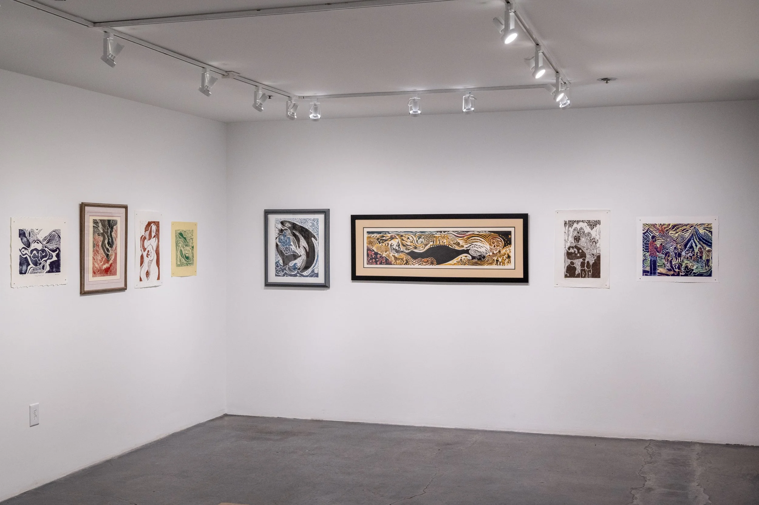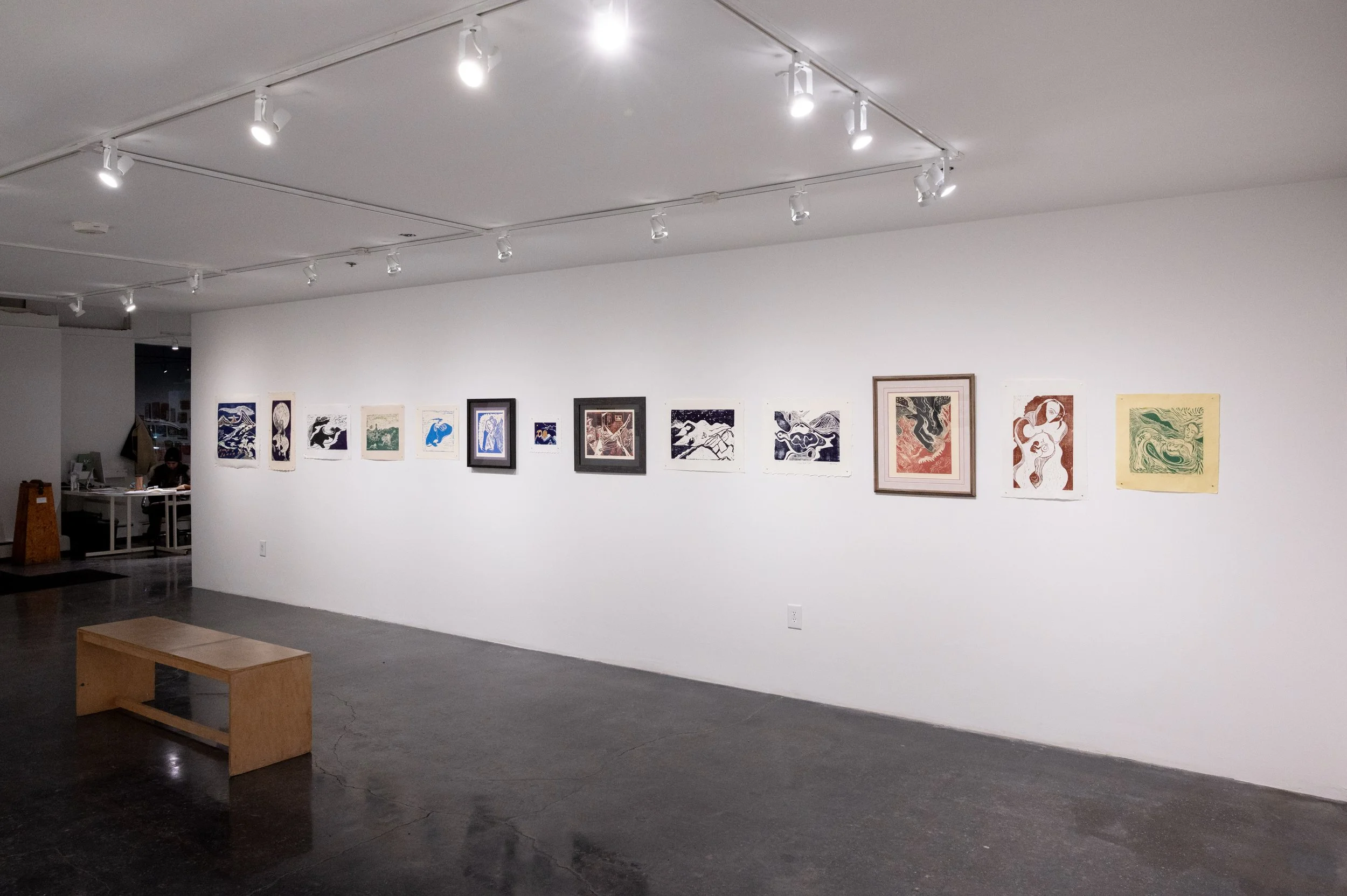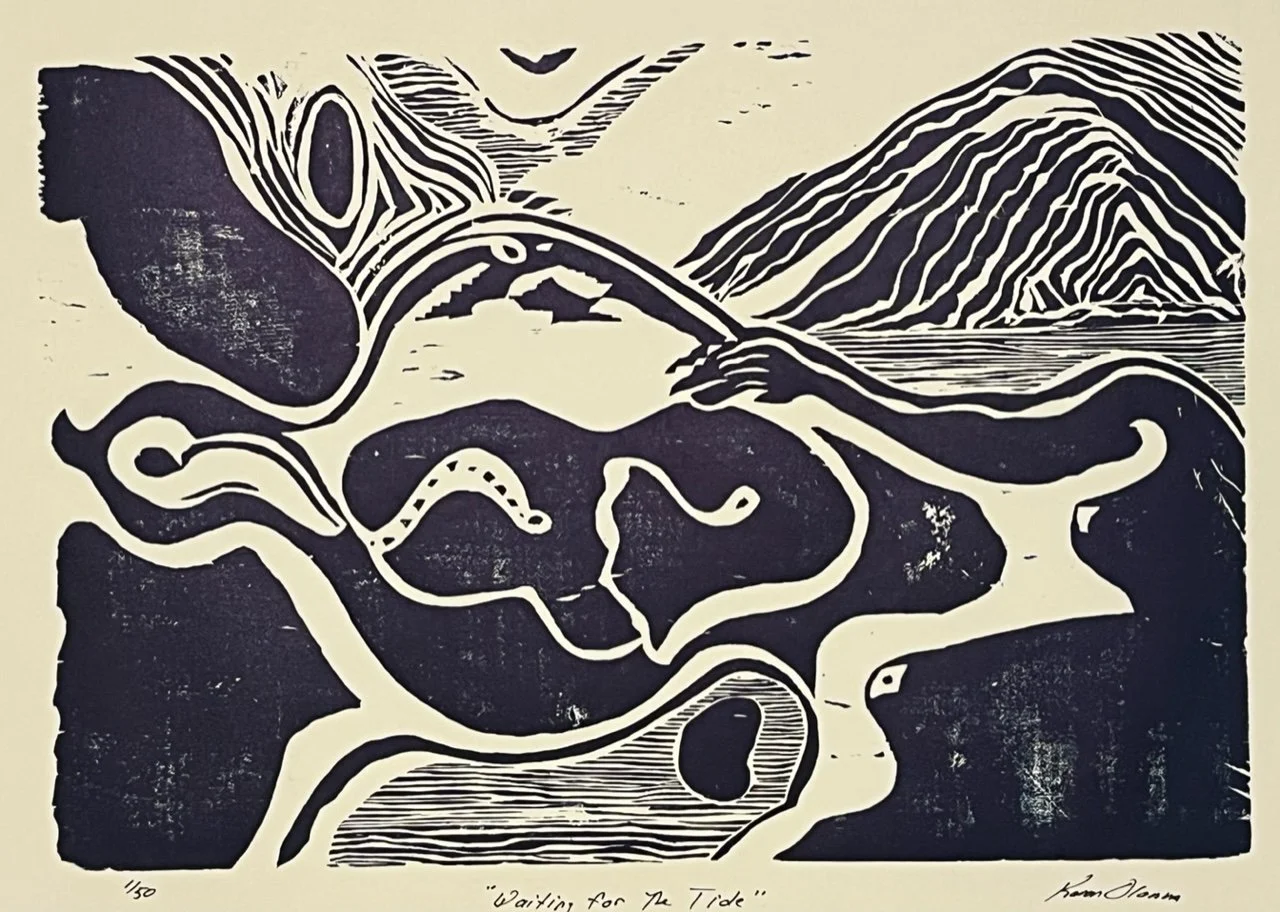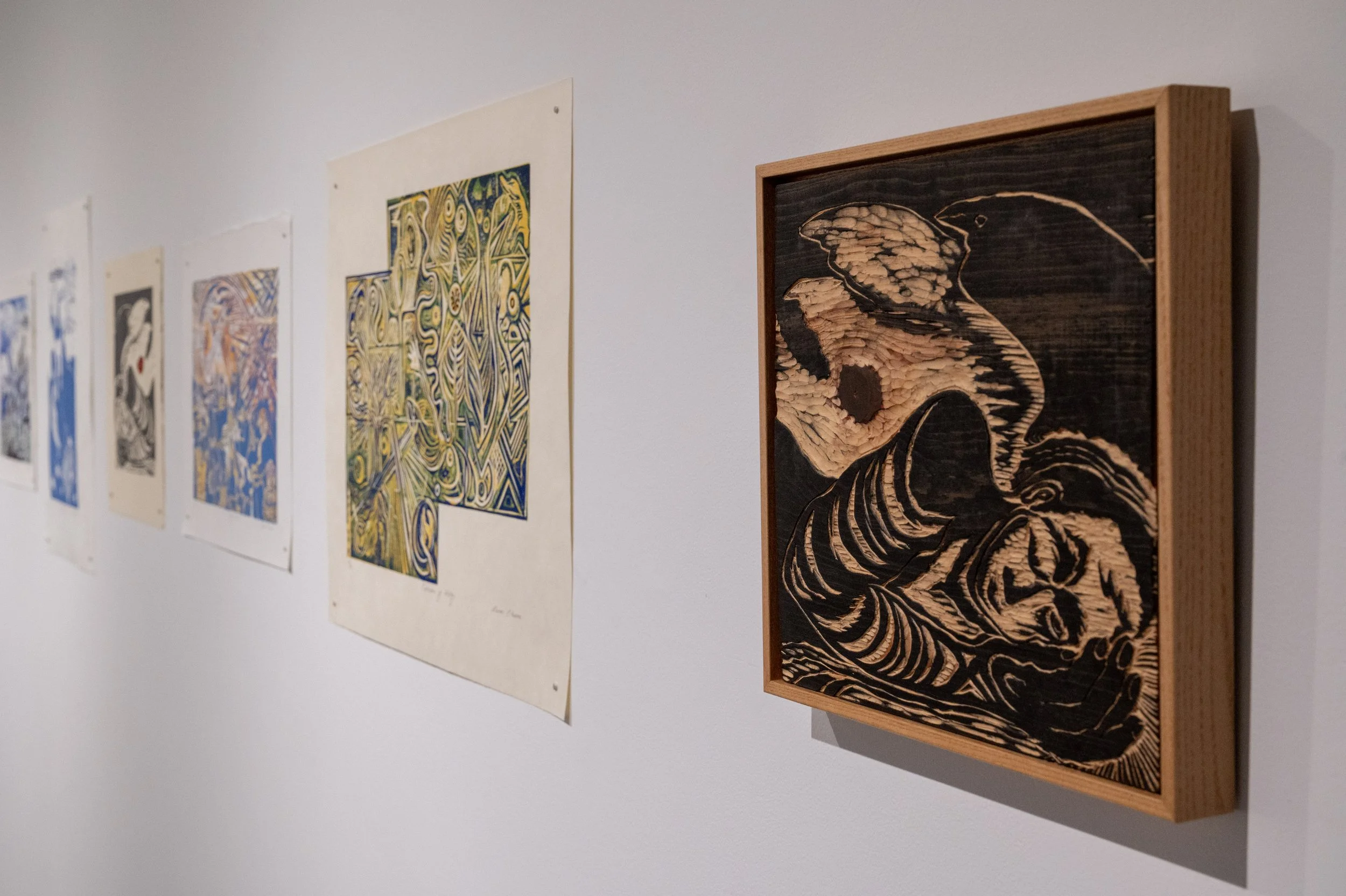 This show, A Hand Carved Story, was conceived after finding and printing my very old woodblocks. I corralled these old and newly carved prints into a made up storyline, which should be viewed in sequence (an extended version in book form is also available). No words are needed, as block printing remains a unique record of life through the hand's ability to express.