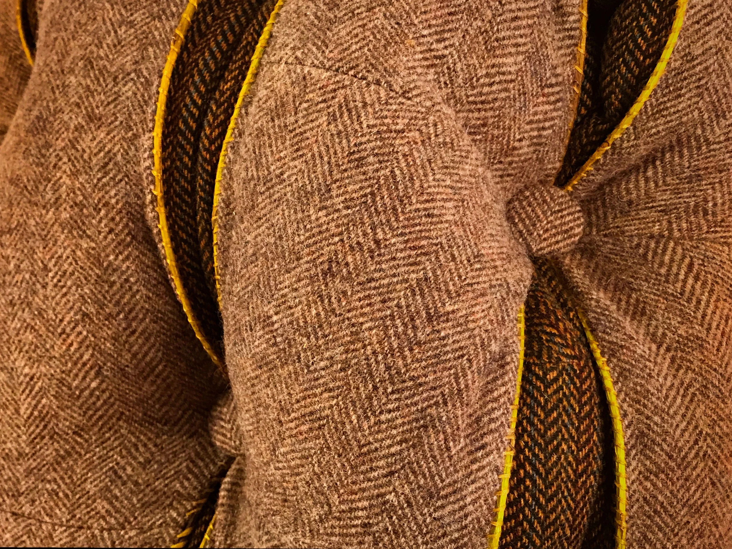 Image: Mandy Bernard, Yielding Constraint, 2021, repurposed wool herringbone coating, cotton fabric, buttons, willow branches, embroidery thread, foam, polyester batting.